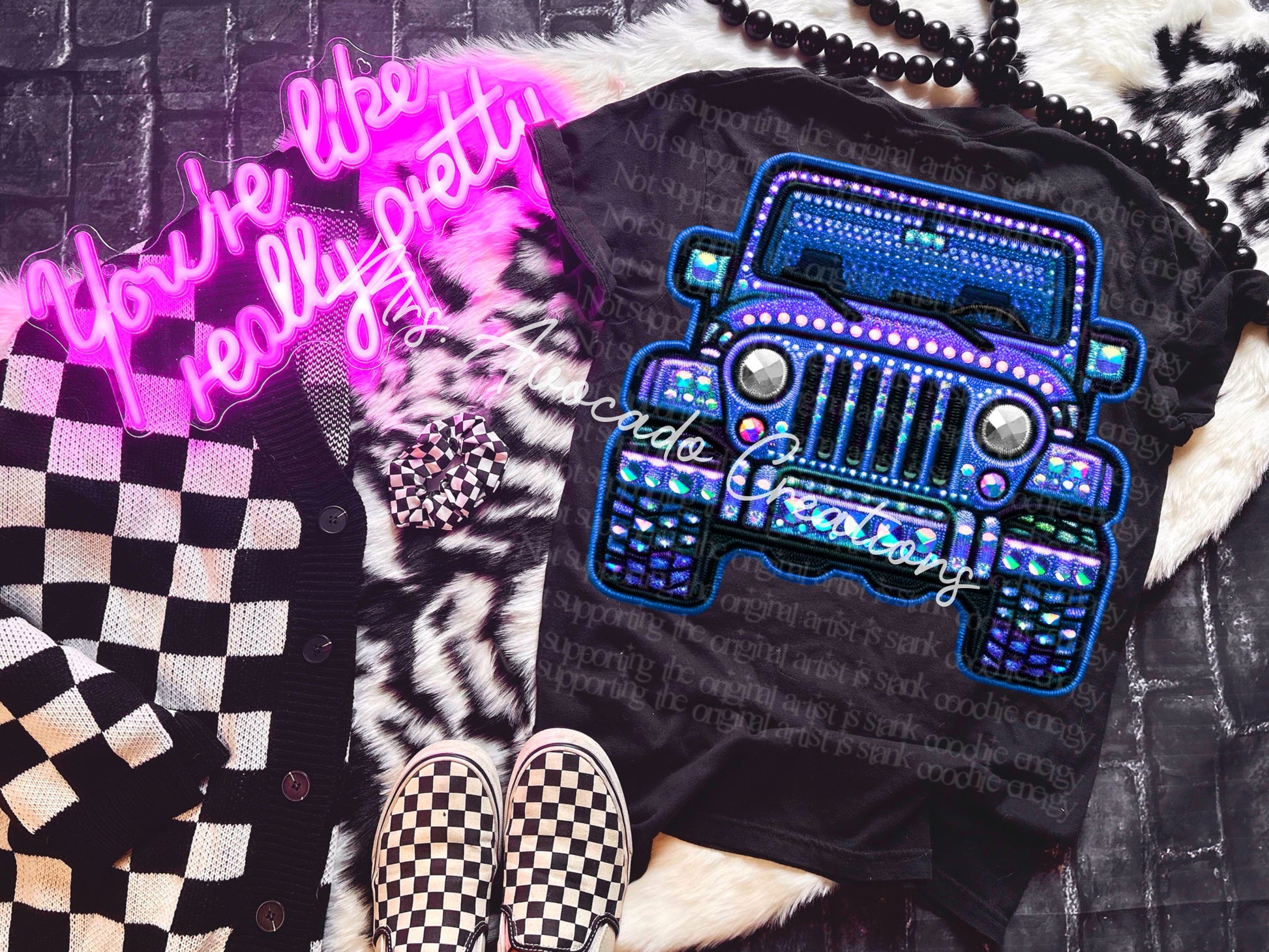 blue jeep faux embroidery