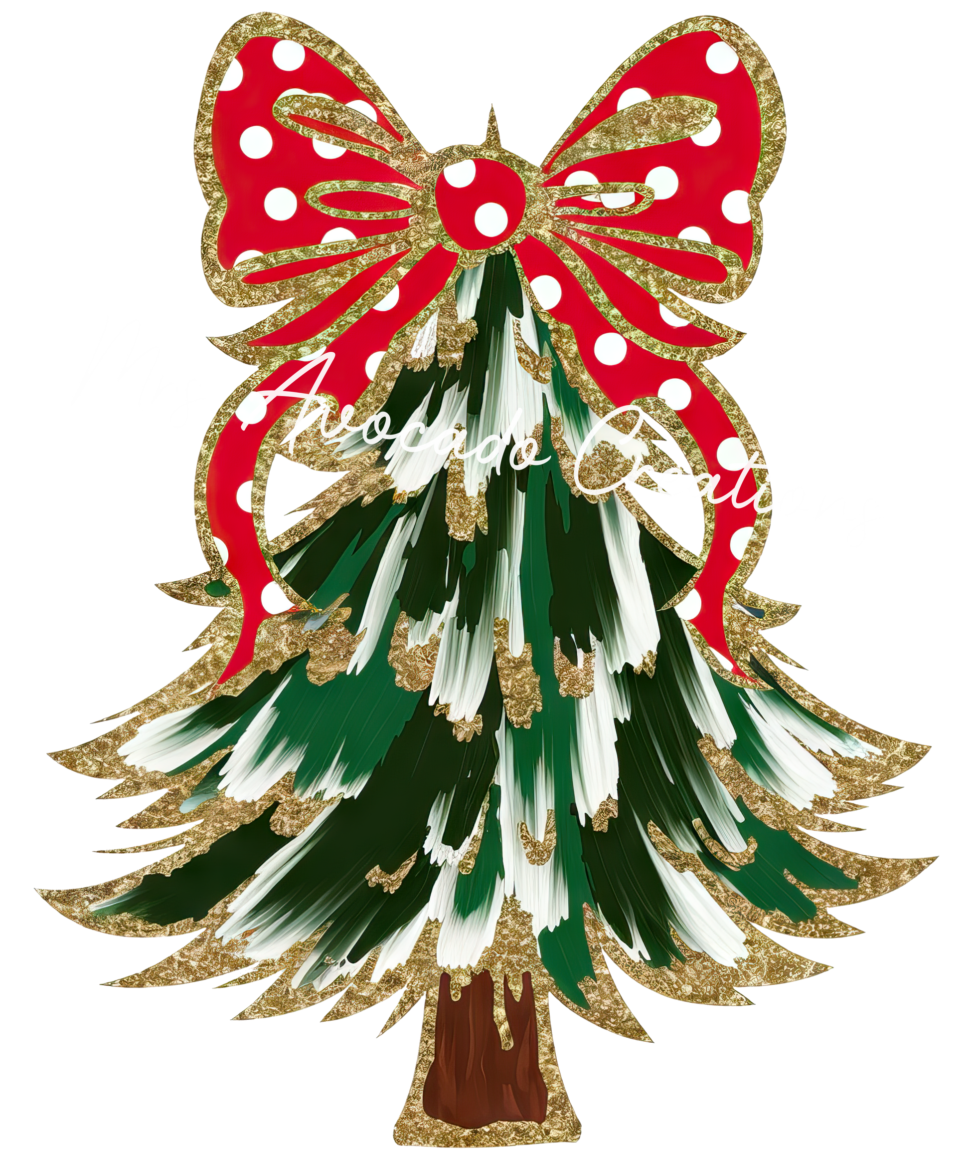 Coquette green, white Christmas tree red bow